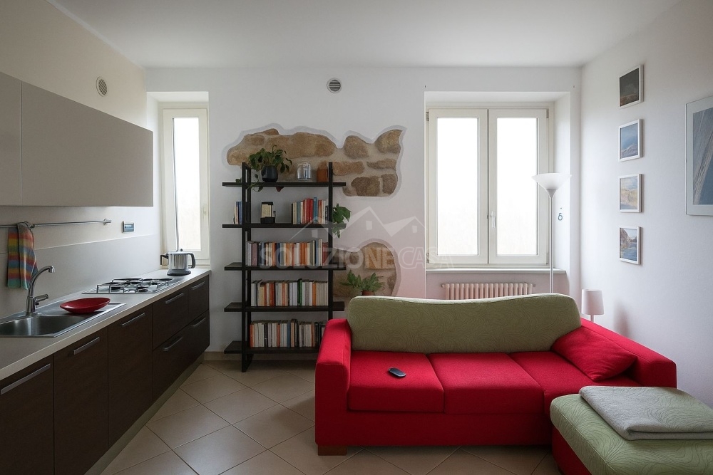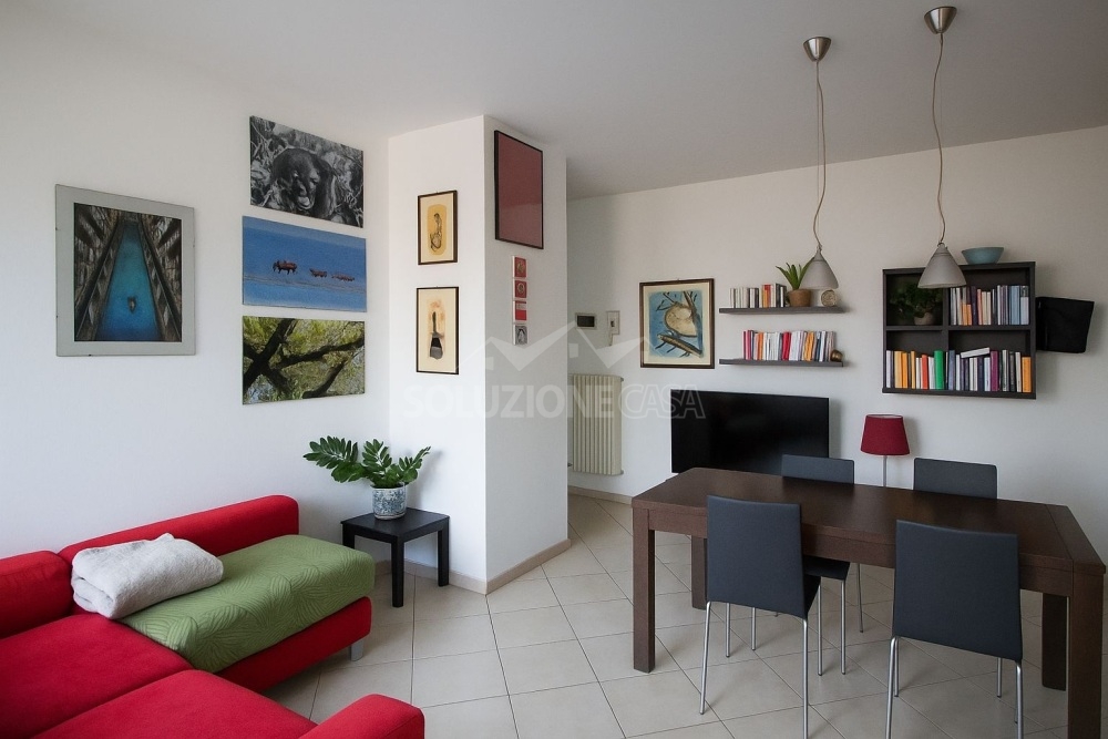 L’appartamento è composto da un ampio soggiorno con angolo cottura, disbrigo arredabile, una camera matrimoniale e un bagno finestrato. Completano la proprietà un posto auto esclusivo e una cantina.