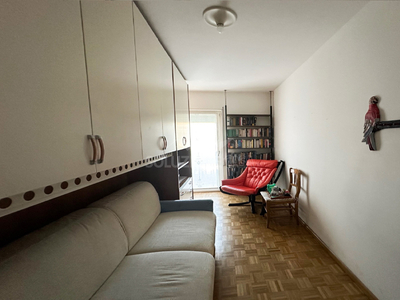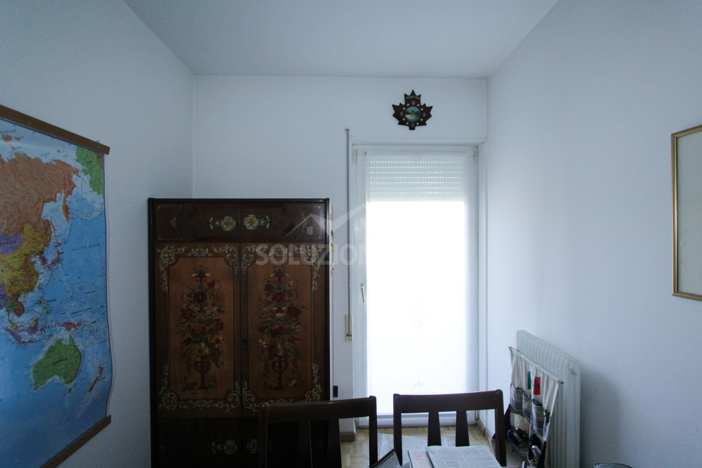 L'immobile si compone di un ingresso che si apre su un atrio arredabile che introduce a tutti i locali tra i quali la cucina abitabile, dotata di un ampio poggiolo vivibile esposto a est, perfetto per colazioni all’aperto. Il soggiorno offre un secondo terrazzo rivolto a ovest, garantendo luce naturale durante tutto l’arco della giornata. La zona notte si compone di tre stanze: una camera matrimoniale che condivide il poggiolo con la cucina, una camera singola servita da terzo balcone e una terza stanza, ideale anche come studio/stanza guardaroba/camera ospiti. Il bagno, cieco ma ben organizzato, dispone di doccia recente e di spazio sufficiente per lavatrice e asciugatrice. Le finiture, tutte originali ma ottimamente conservate, permettono di abitare l’immobile senza necessità di lavori immediati. Completano la proprietà una cantina, un box auto e un cortile/giardinetto di proprietà esclusiva, attualmente utilizzato come posto auto esterno aggiuntivo.