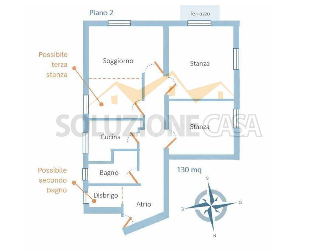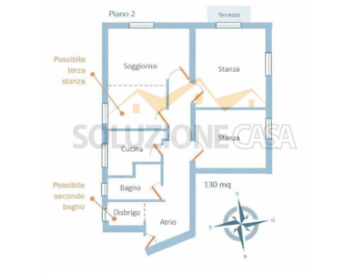 L’appartamento è composto da: accogliente ingresso, ampio soggiorno, cucina abitabile con zona pranzo, due grandi camere, con possibilità di ricavare una terza, bagno finestrato con doccia idromassaggio. Facile possibilità di realizzare un secondo bagno.