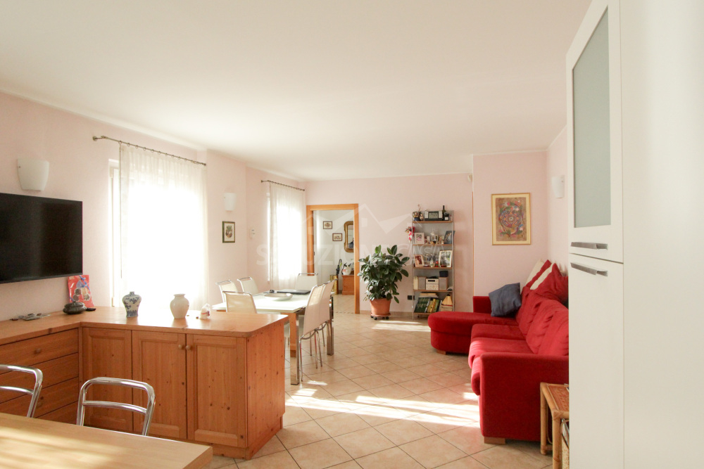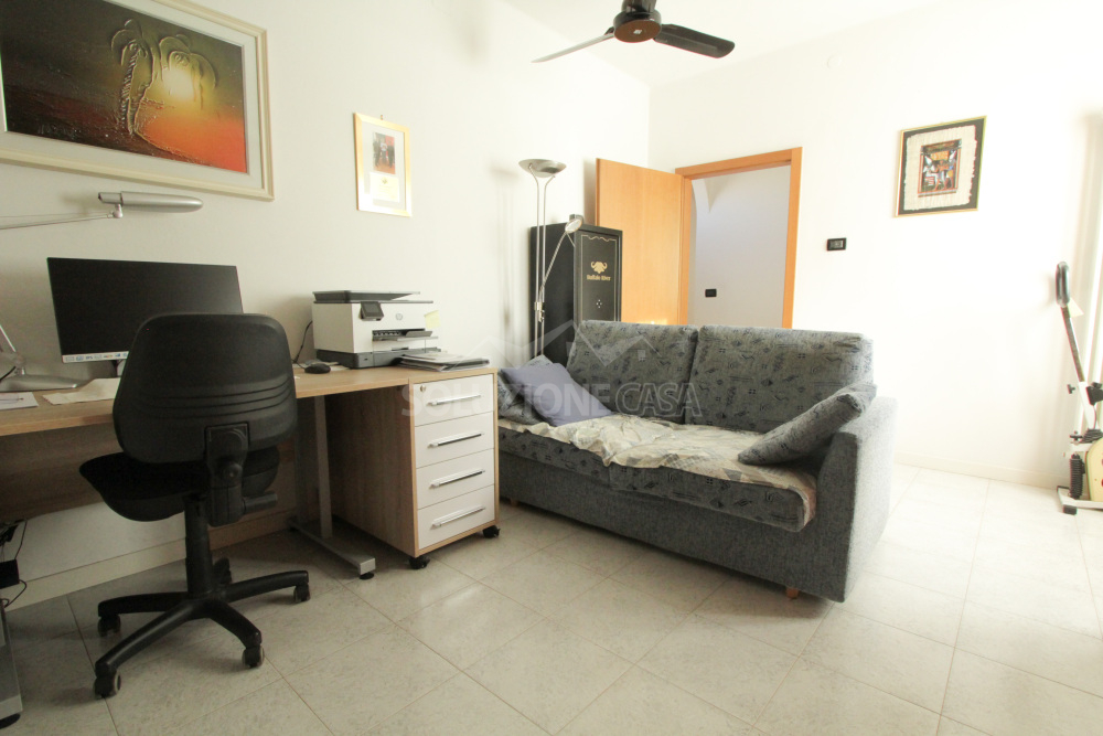 Tre camere da letto (due matrimoniali e una singola), ampia terrazza, balcone di servizio, bagno finestrato.