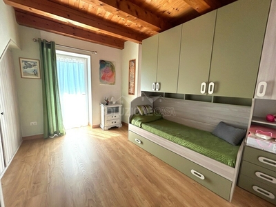 Scendendo al livello intermedio si trova la zona notte, composta da tre camere da letto – una matrimoniale e due singole – tutte con accesso a balconi che regalano scorci suggestivi, un secondo bagno finestrato e una comoda lavanderia.