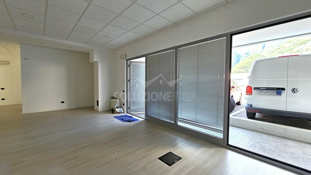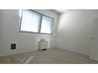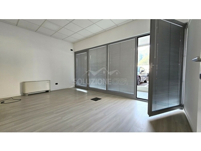 In zona commerciale - direzionale vicino alla città verso nord e dotata di comodi collegamenti stradali, proponiamo in affitto prestigioso ufficio di recente realizzazione. Al piano l'ingresso è sia pedonale che carrabile, dove troviamo 3 posti auto di proprietà proprio davanti al marciapiede che porta all'affaccio vetrinato dell'ufficio, dove troviamo più ingressi a servizio dei locali in oggetto. l'unità è composta da due locali uso ufficio e un area negozio ben distinta un ulterioni due zone separate, inoltre ci sono altri due locali ripostiglio e deposito, nonchè il wc finestrato. Il tutto molto luminoso e sullo stesso livello. La soluzione è già stata predisposta di impianto di rete e completamente cablata, ventilconvettori ed impiando di aspirazione centralizzato.